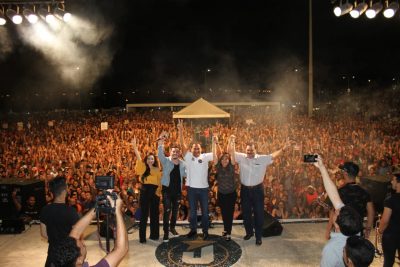 Milhares de pessoas se reuniram nesta quarta-feira (17) na Praça Maria Aragão, em São Luis, para celebrar a estrondosa vitória do deputado federal Weverton ao Senado Federal nas eleições do dia 7 de outubro. “Agradeço a Deus por ter me dado a condição de ser eleito com quase 2 milhões de votos”, disse o deputado, reafirmando o seu compromisso com o estado e com as causas dos trabalhadores. “É a primeira vez na história do Maranhão que é eleito um senador vindo do povo e eu hei de honrar a confiança que me foi dada”, garantiu.