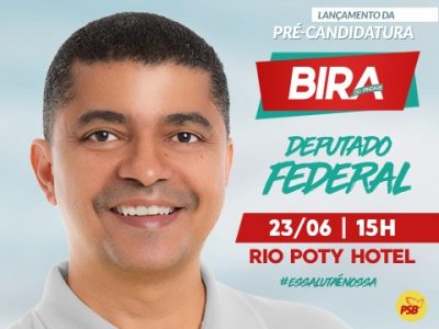 O Partido Socialista Brasileiro no Maranhão (PSB/MA) lança neste sábado (23), no Rio Poty Hotel, a pré-candidatura de Bira do Pindaré a deputado Federal. Elegê-lo é uma prioridade para os socialistas maranhenses, que o avaliam como um dos melhores nomes para o Congresso Nacional.