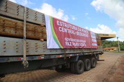 “Mais uma ‘lenda’ que estamos enfrentando: a Ponte Central-Bequimão. As estruturas estão chegando ao Maranhão, em dezenas de carretas”, afirma o governador Flávio Dino.