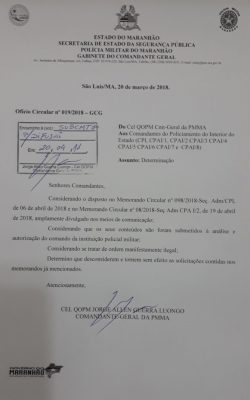 O Comando Geral da Polícia Militar do Maranhão expediu ofício nessa sexta-feira (20) para que fique claro que são ilegais e sem valor os documentos em questão.