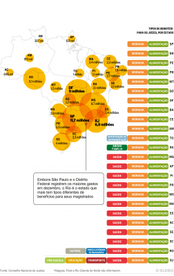 A sociedade brasileira sabe e critica o Congresso Nacional por pagar auxílios moradia generoso a parlamentares mesmo tendo apartamentos em Brasília. O que ainda não se sabia e surpreende é a divulgação, agora, de que magistrados nas mesmas condições em seus estados, também são agraciados com o mimo e regozijam com o dinheiro do contribuinte. No Maranhão, somente no mês de dezembro, segundo informa o jornal O Globo em sua versão eletrônica, gastou R$ 2,4 milhões com verba extra a juízes. Veja abaixo quando cada estado desembolsou com seus pares.
