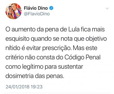 O governador Flávio Dino usou sua página no Twitter para criticar a manutenção da condenação e aumento da pena do ex-presidente Lula e advertiu que “nem Lula nem ninguém pode ser condenado a 12 anos com base em alegados indícios e em palavras de delator”.