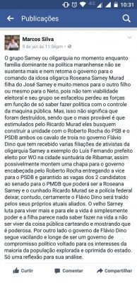 Mas Silva peca ao afirmar que o PSDB e a aproximação do governador Flávio Dino ao prefeito de São José de Ribamar, Luís Fernando (PMDB), serão a derrota do governo em 2018.