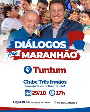 Pré-candidato ao PT ao Governo do Maranhão, o vice-governador Felipe Camarão estará de volta nesta quarta-feira (29) e quinta-feira (30) ao interior do estado em pré-campanha em mais uma rodada de reuniões do programa “Diálogos pelo Maranhão”, onde irá discutir com lideranças de Tuntum e Capinzal do Norte, questões relacionadas ao desenvolvimento do Maranhão.