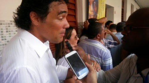 | Edinho Lobão entrou na fila para votar no Colégio Santa Teresa |