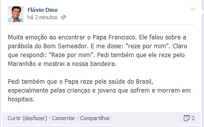 tom emocionado narrou no Facebook seu encontro do o Papa Francisco, durante a Jornada