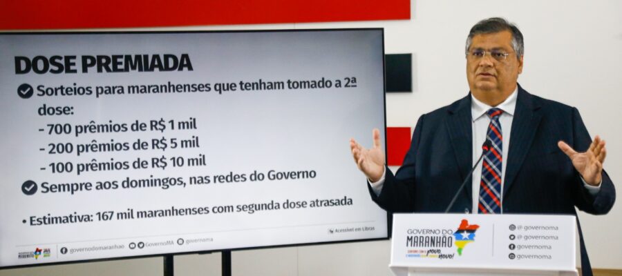 Programa Dose Premiada, Alcântara destacada como a primeira cidade do Brasil a alcançar 100% de vacinação dos adultos com a primeira dose contra a Covid-19, imunização das comunidades quilombolas e mais faixas etárias atingidas com a campanha. Estes foram os destaques anunciados pelo governador Flávio Dino, em coletiva, nesta sexta-feira (18), no Palácio dos Leões. Na ocasião, o governador atualizou o cenário da pandemia no Maranhão.