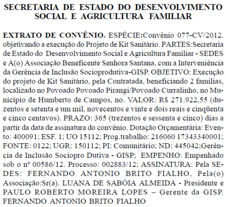 Social e Agricultura Familiar, acredite, assinou convênio com mais entidade suspeita, no