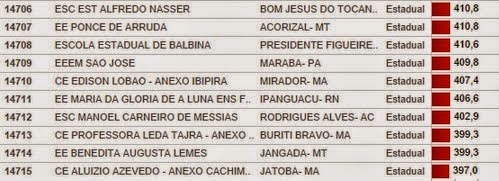 ranking: a escola estadual Centro de Ensino Aluísio Azevedo.