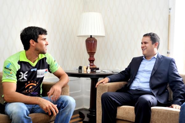 Prefeito Edivaldo em conversa descontraída com o bicampão, Marcelo Medeiros