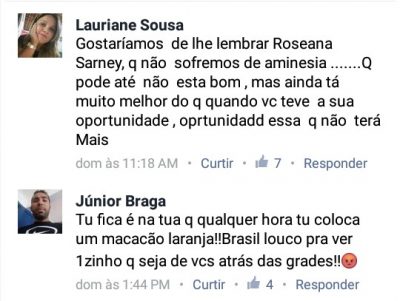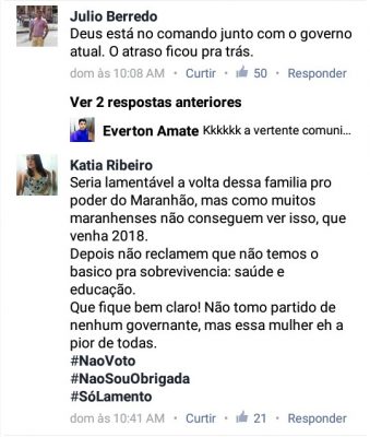 Agora, outra confirmação de que não vai acontecer: o povo, principal responsável pela derrocada da família Sarney tem memória e não a quer mais de volta. A entrevista concedida ao jornal O Imparcial, no último sábado (26), teve uma chuva de comentários negativos contra a declaração da ex-governadora.